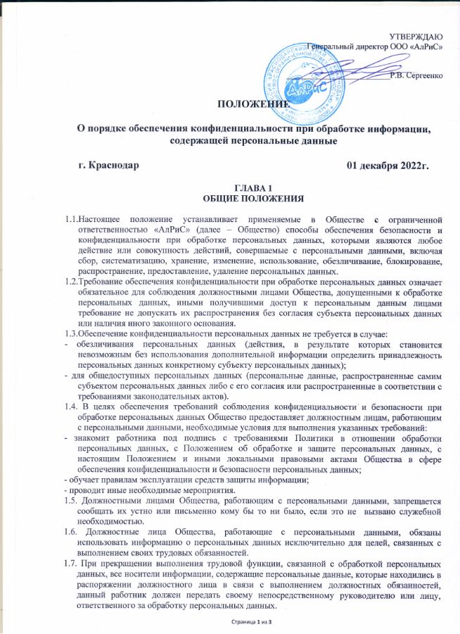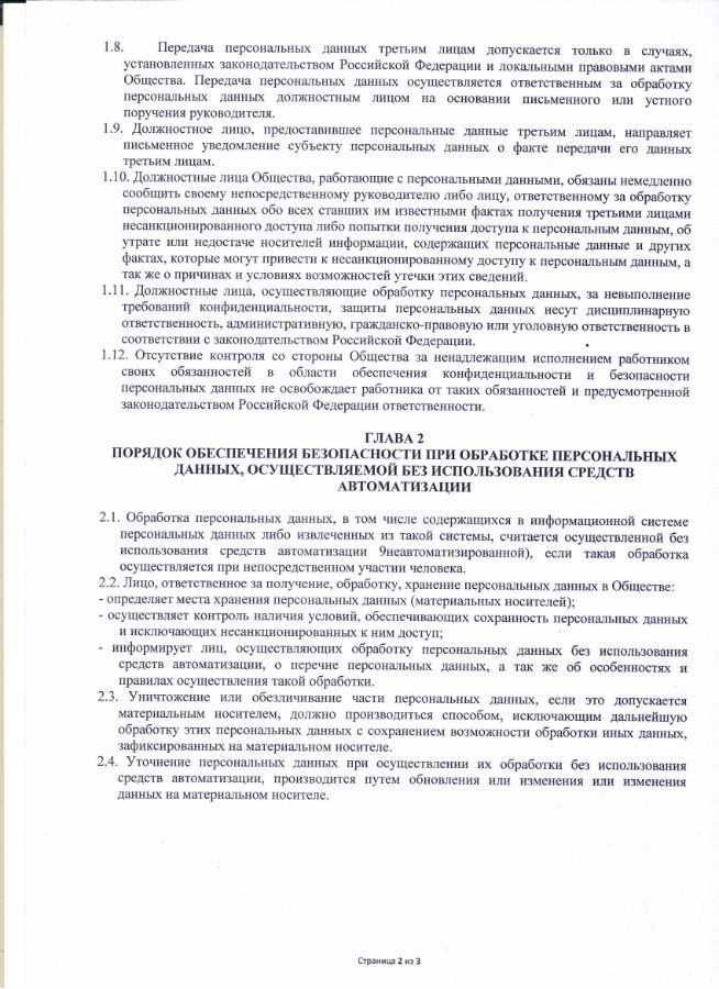 Положение о порядке обеспечения конфиденциальности при обработке информации, содержащей персональные данные.
